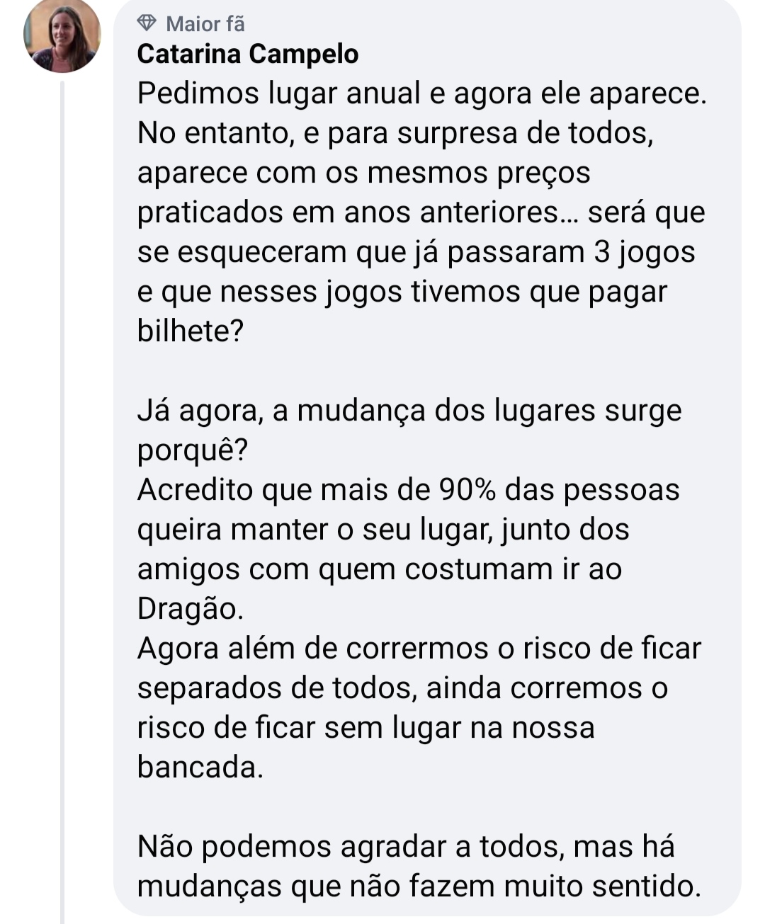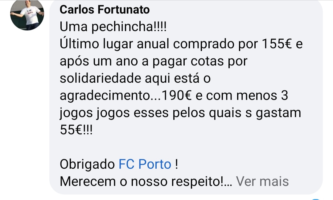 Entendem os portistas que o valor anual é muito elevado, ainda para mais depois de já terem existido jogos em casa e dos adeptos terem sido obrigados a pagar esses bilhetes. Muitos falam em falta de respeito. Qual a tua opinião? Abaixo a tabela de preços e a indignação dos portistas
