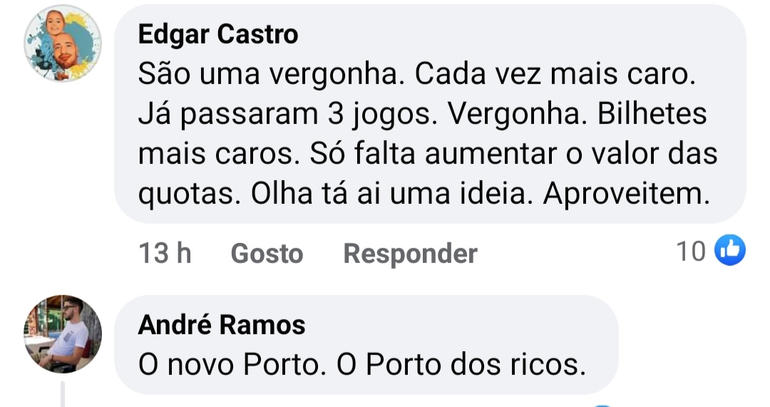 Os preços para os primeiros jogos em casa já tinham sido alvo de críticas, por os portistas considerarem demasiado caros (recordar que a pandemia prejudicou muito o FC Porto, mas também os portugueses e os adeptos ❗), mas ontem as críticas subiram de tom com a apresentação do novo bilhete de época.