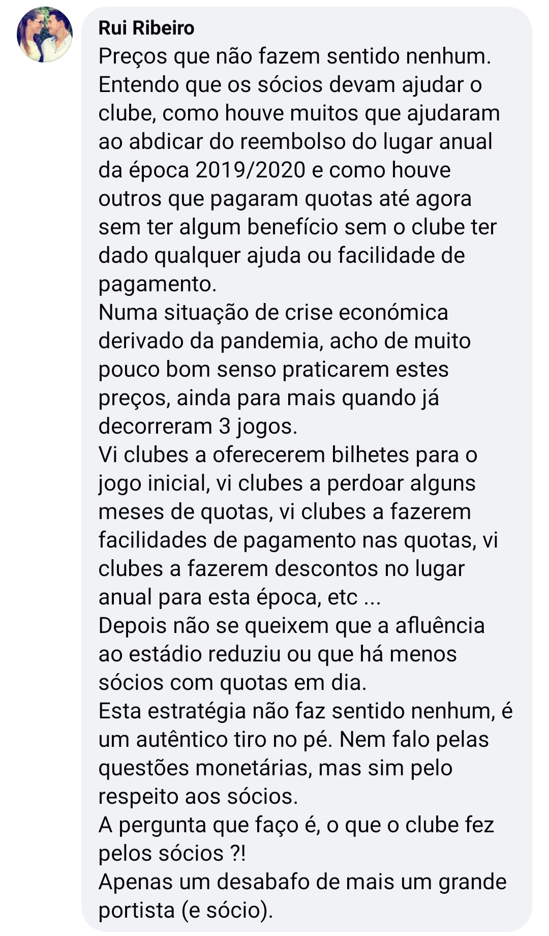 Qual a tua opinião? Partilhas desta indignação ou consideras os preços justos tendo em conta a situação pandémica que o clube atravessa e as suas necessidades de tesouraria que foram fortemente afetadas com isso?