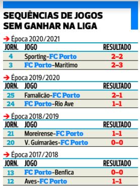 A receção ao Gil Vicente marca o regresso ao campeonato e o FC Porto quer voltar às vitórias. Esse resultado vale os 3 pontos indispensáveis na corrida ao título por um lado, e por outro, vale a Conceção não ter a pior série de resultados no FC Porto para o campeonato. É que o técnico viu sábado ser igualado o  pior registo de resultados consecutivos de dragão ao peito: 2 jogos sem ganhar.