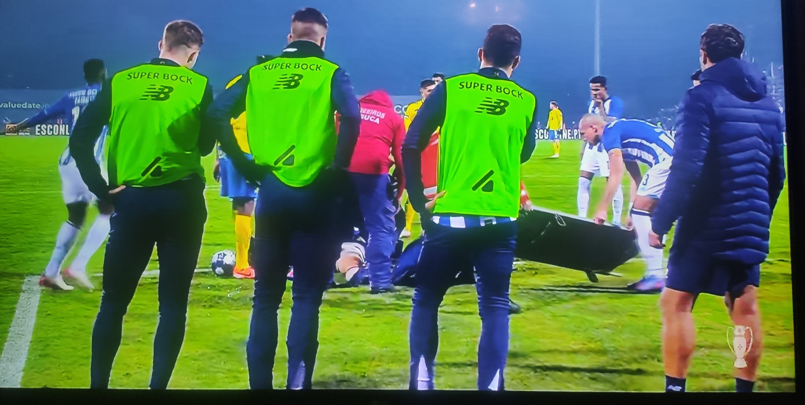 Diogo Costa caiu desamparado após uma disputa aérea com o gigante Abdoulaye e esteve vários minutos no relvado a receber assistência.