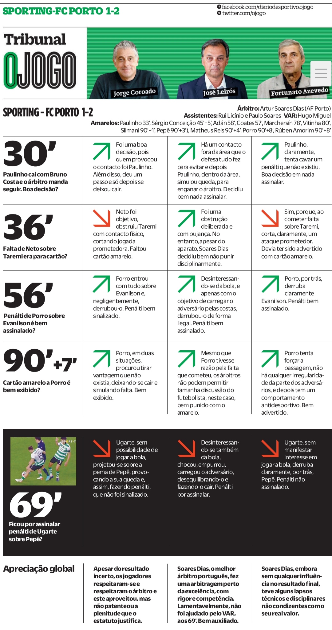 Pois bem, esse lance não só foi bem ajuizado (é unânime a decisão em todos os jornais desportivos), como houve um outro penalty por assinalar sobre Pepê. Além disso, Paulinho não sofreu falta (nunca seria penalty pois foi fora da área) e até há quem considere que Neto devia ter visto amarelo. Vê aqui a opinião do tribunal OJOGO, e de dois ex-árbitros internacionais portugueses, Duarte Gomes (no jornal ABOLA) e Pedro Henriques.
