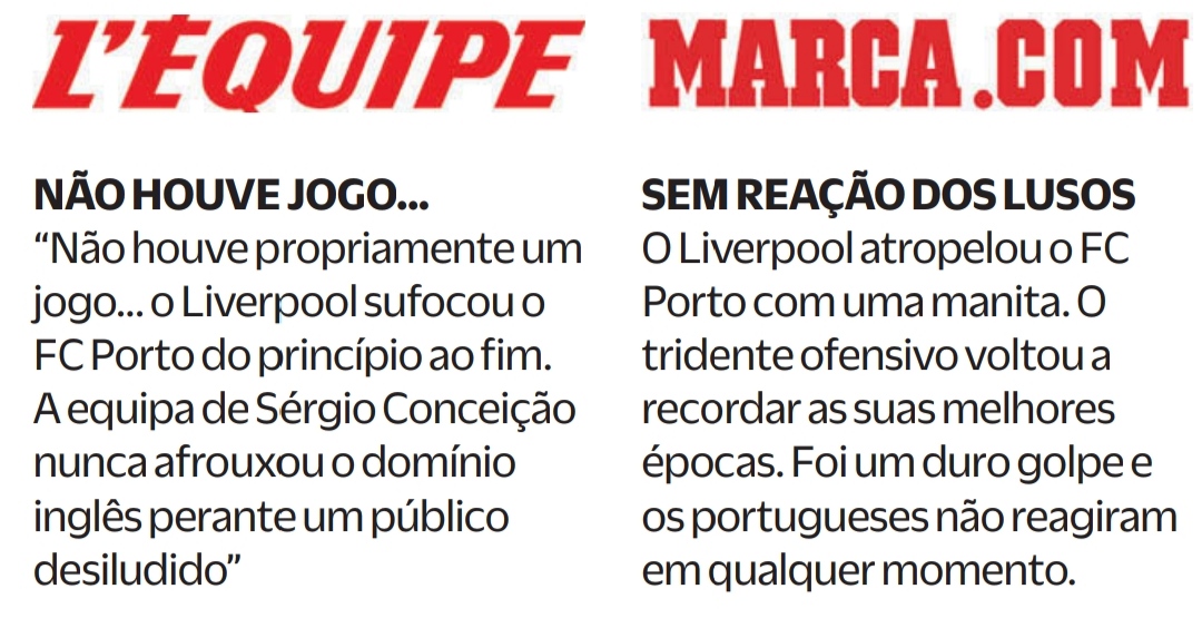 A imprensa internacional – tal como o treinador Sérgio Conceição – não foi meiga relativamente à exibição do FC Porto.
