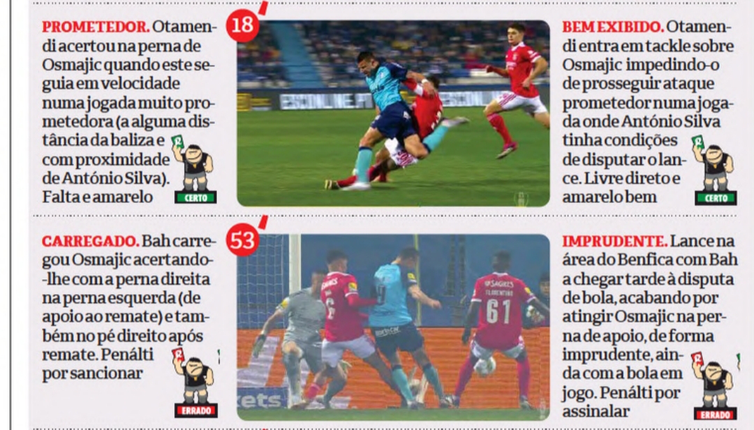 2 dos 3 jornais consideram ainda que o Benfica deveria ter jogado com menos um desde os 17′, por expulsão de Otamendi.