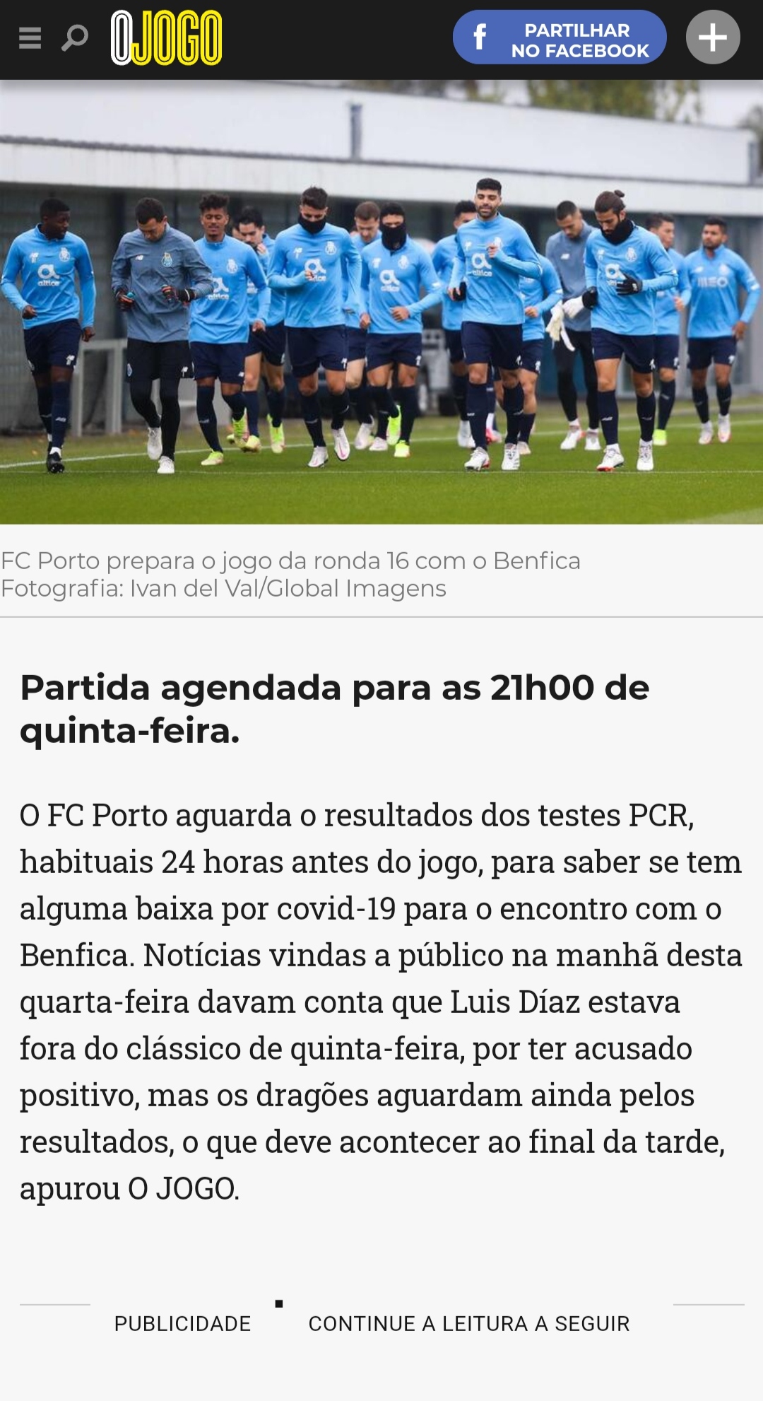 O jornal OJOGO acaba de desmentir que Diaz esteja já fora do clássico, garantido que o FC Porto ainda aguarda os resultados dos testes PCR, que só devem chegar ao final da tarde.