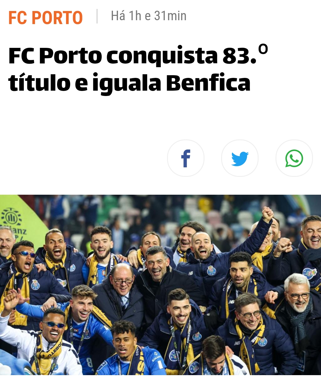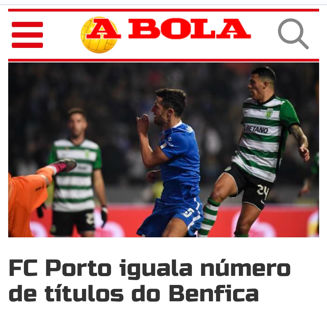 Depois do FC Porto fazer uma publicação Oficial a dizer que fez história ao tornar-se no clube português, com mais títulos oficiais, ultrapassando assim o Benfica, o jornal ABOLA e o Maisfutebol não deixam de referir que o FC Porto fez história, mas…ao empatar com Benfica em número de títulos.