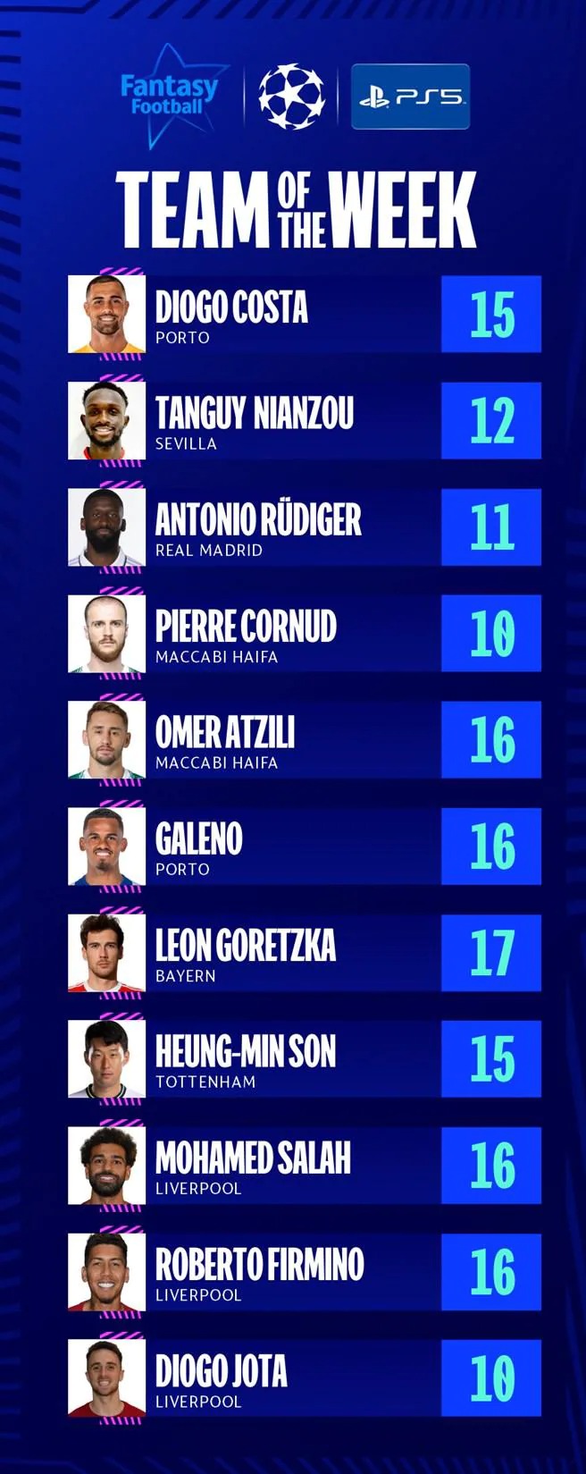 Tal como na jornada passada, o FC Porto volta a colocar jogadores no 11 da semana da Champions.