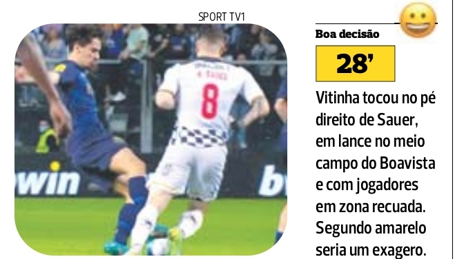 Acho muito difícil conseguir explicar-se este critério, conseguir explicar-se como é que o melhor árbitro português, nas palavras de Sérgio Conceição, consegue, com calma, ir olhar para aquelas imagens e, perante o histórico, perante o critério aplicado até agora na nossa liga, toma esta decisão. Poderia ser só a minha opinião, mas desta vez conseguiu unanimidade, todos os especialistas de arbitragem acharam uma coisa e o melhor árbitro português, nas palavras de Sérgio Conceição, olha para aquelas imagens e mantém a sua decisão errada. Porquê? Não faço a mínima ideia, mas acho que os senhores da arbitragem têm agora uma ótima oportunidade para refletirem, porem estes casos ao lado uns dos outros e perceberem quem errou.