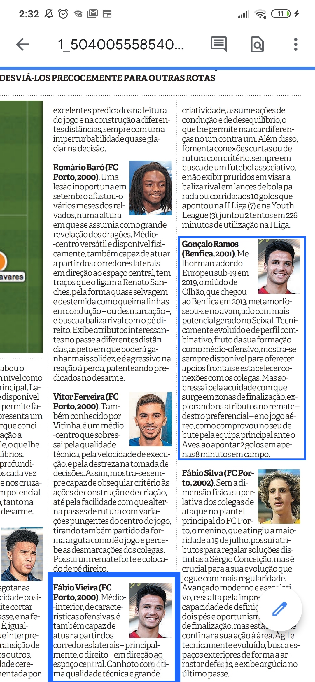 Até aqui tudo bem, não fosse o matutino ter colocado na foto de Fábio Vieira…a foto de Gonçalo Ramos…Pior, também houve um texto a destacar o jovem ponta de lança do Benfica e…a foto foi repetida!