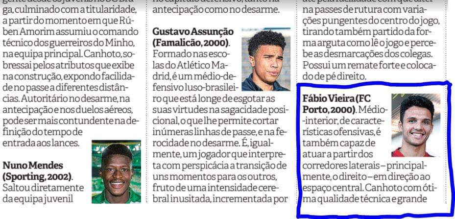 Numa página dedicada a jovens promessas que despontam no futebol português, o Record destacou Fábio Vieira.