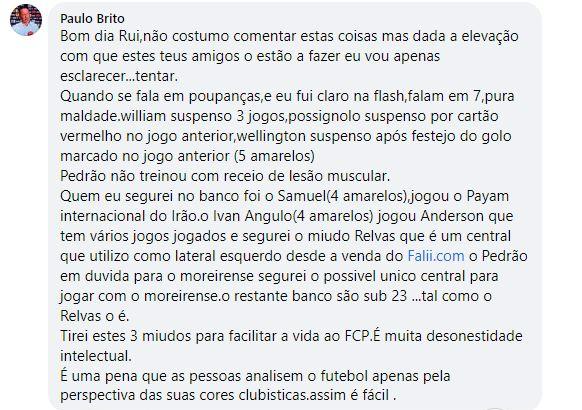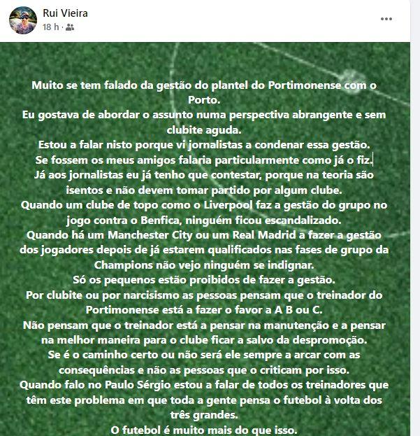 Foi numa resposta a uma publicação de Rui Vieira, antigo jogador e treinador, que Paulo Sérgio voltou ao tema.