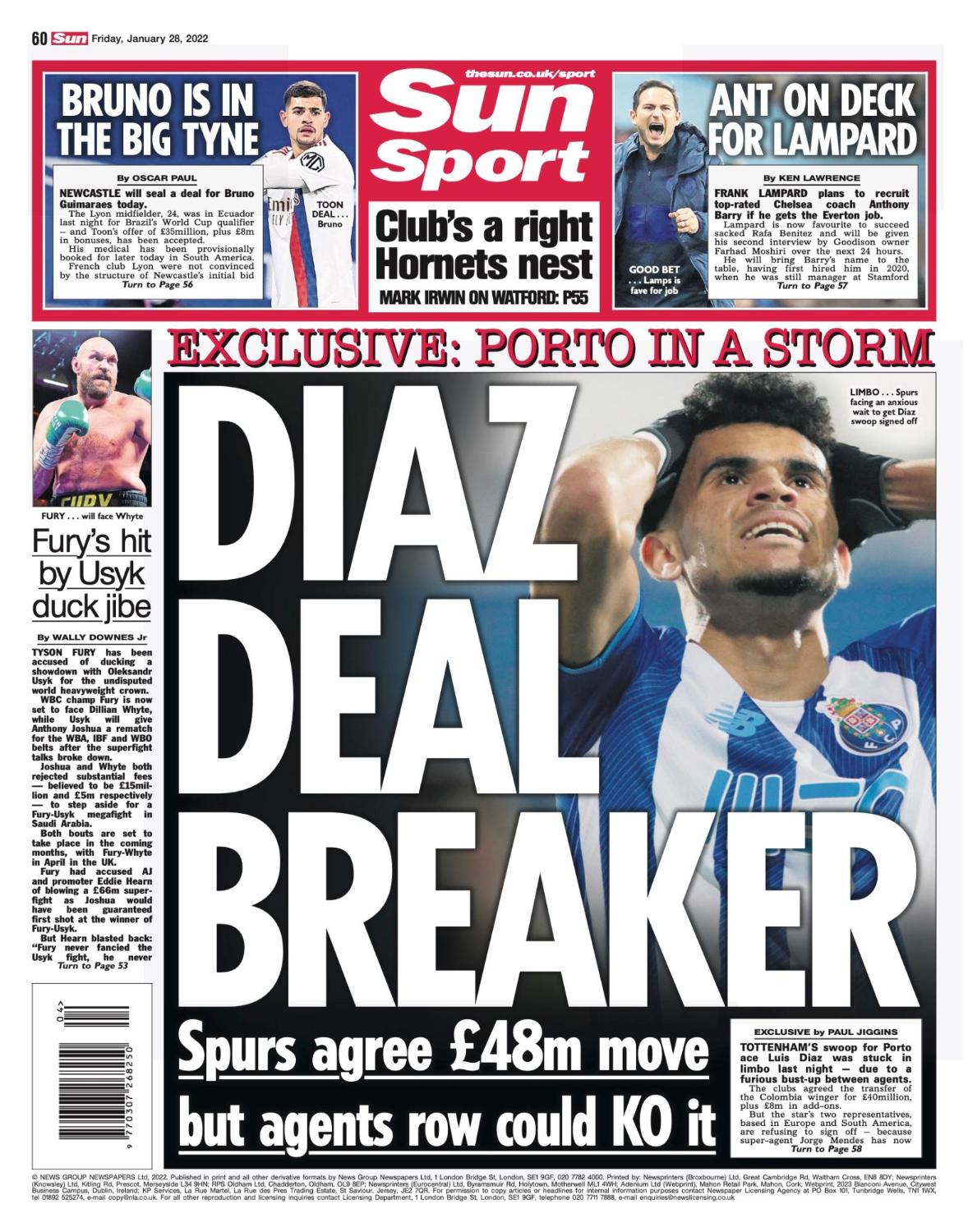 Luís Diaz é esta sexta-feira capa (quase que ocupa a frente toda do tabloide inglês 😱) do Jornal The Sun.