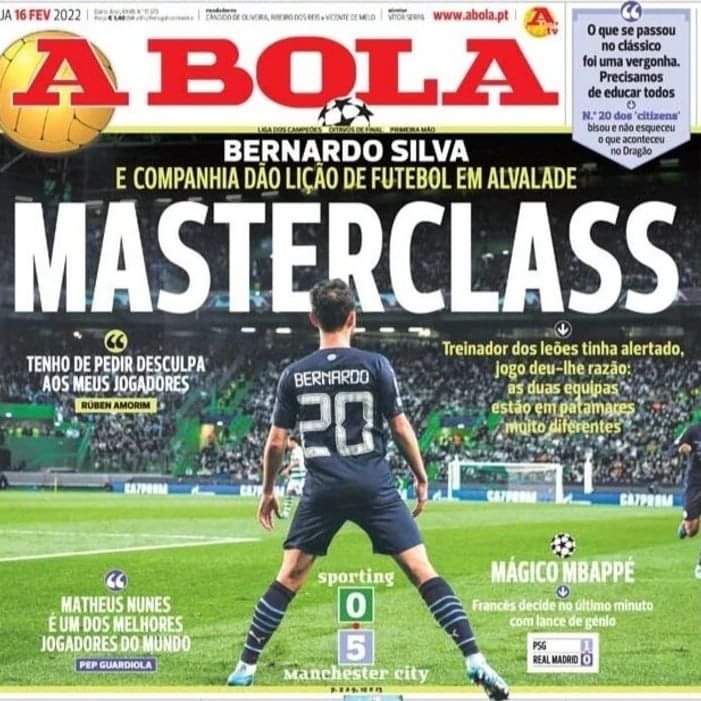 A questão aqui não é ser goleado, isso infelizmente tem a ver com muitos factores, sendo a diferença de competitividade existente em Portugal e Inglaterra provavelmente a maior. A questão é a forma como os 2 clubes foram goleados. O Sporting aceitou a superioridade dos”citizens” e foi subjugado ao gigante inglês. Foi sempre muito macio, tremeu como varas verdes, e não fez sequer um remate à baliza o jogo todo. Encarou com naturalidade a derrota – goleada, repita-se – e, a dado momento – e o treinador Amorim confirmou no fim – nomeadamente a partir do intervalo, já com 0-4 no marcador, baixou linhas, defendeu, e preocupou-se mais em não sofrer mais golos do que tentar marcar. O City também não precisou de carregar, já tinha a eliminatória resolvida, mas ainda marcou mais um golo. No final do jogo, houve vários sorrisos e alegria em Alvalade por estarem a aprender frente a um dos melhores do mundo, clube e treinador (palavras de Amorim).