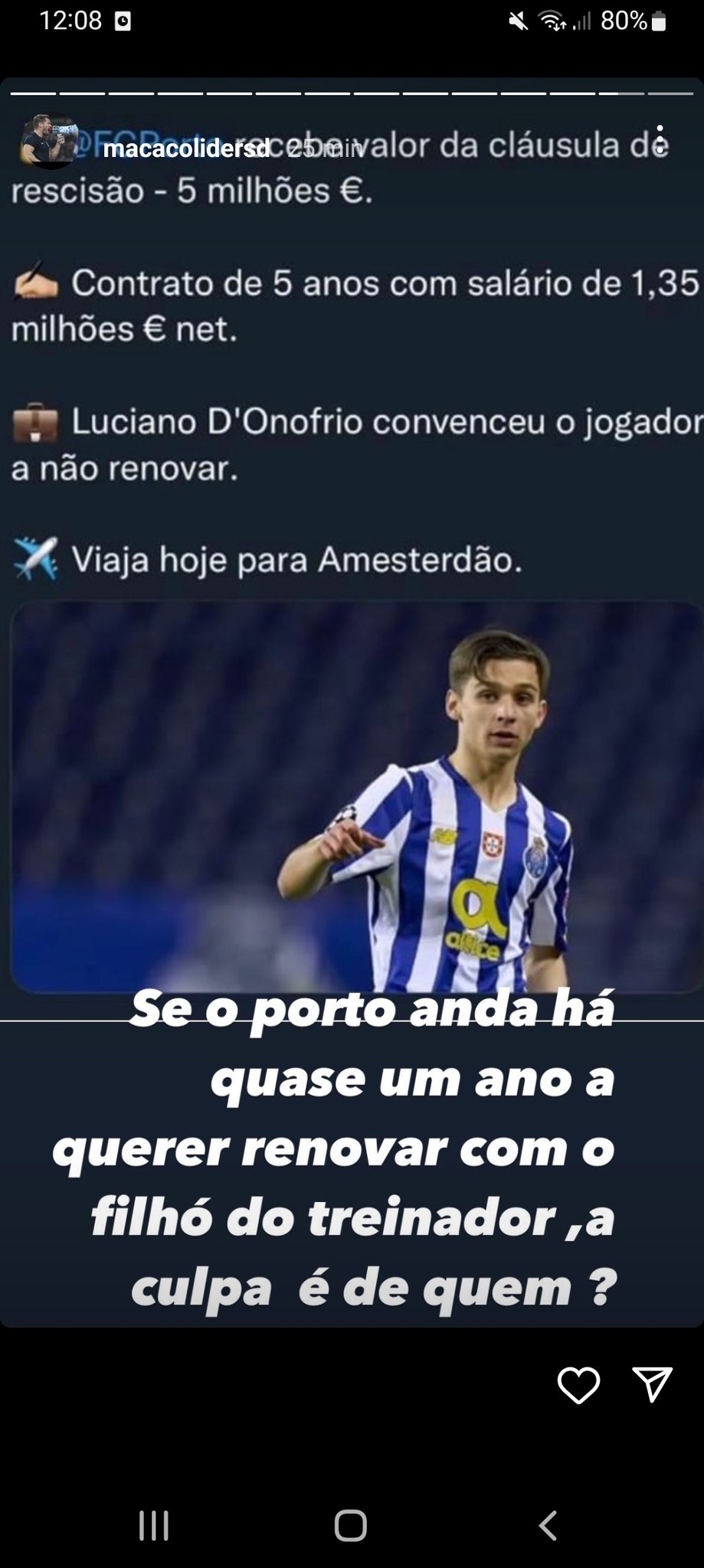 Francisco Conceição está de saída do FC Porto, para o Ajax, numa situação que deixou desesperados os adeptos do FC Porto. A publicação de Macaco, líder dos SD, ainda veio incendiar mais os ânimos.