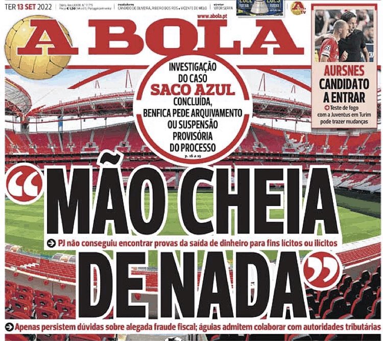 “A BOLA passou a alinhar com o Benfica a par e passo, como se fosse uma extensão diária do jornal do clube e, simultaneamente, alinhada com a estratégia do Benfica, a prosseguir um ataque sistematico ao seu principal rival, o FC Porto…” – Miguel Sousa Tavares, em pleno jornal 👏🏻 pic.twitter.com/kN0Jm350YA
