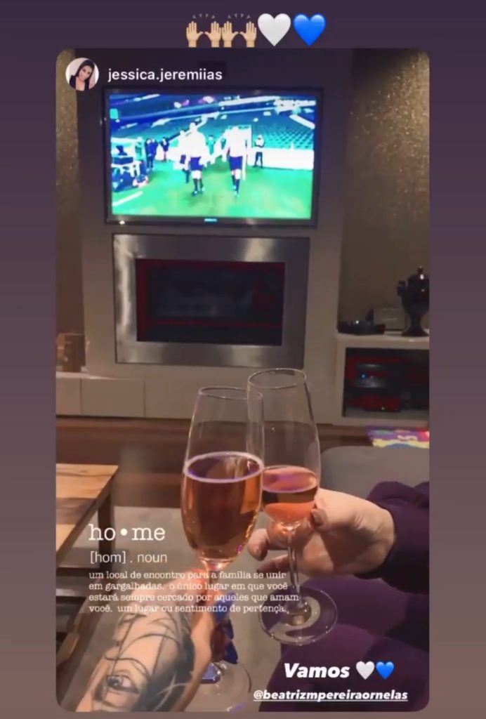 A belíssima namorada de Nanú, Beatriz Ornelas, colocou numa story no seu Instagram enquanto via o nosso jogo.
