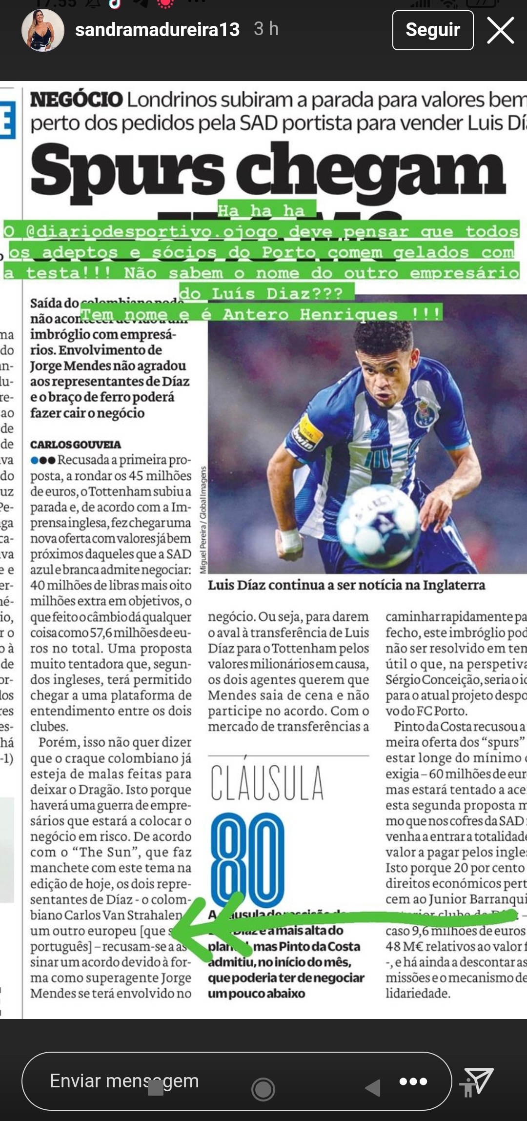 Não é só Carlos Van Strahalen, agente de Luís Diaz, ou o superagente Jorge Mendes que estão envolvidos no negócio. Há mais um agente e um velho conhecido do FC Porto no meio de tudo… Pasmem-se…Antero Henrique.