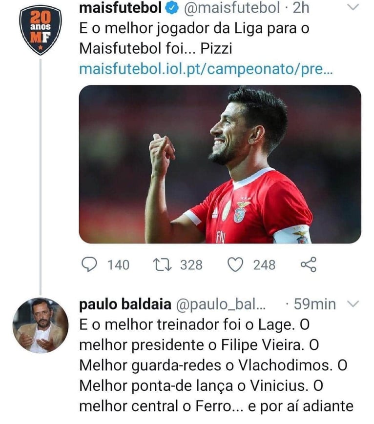 O referido jornal publicava uma notícia em que mostrava que Pizzi tinha sido eleito o melhor jogador do campeonato.