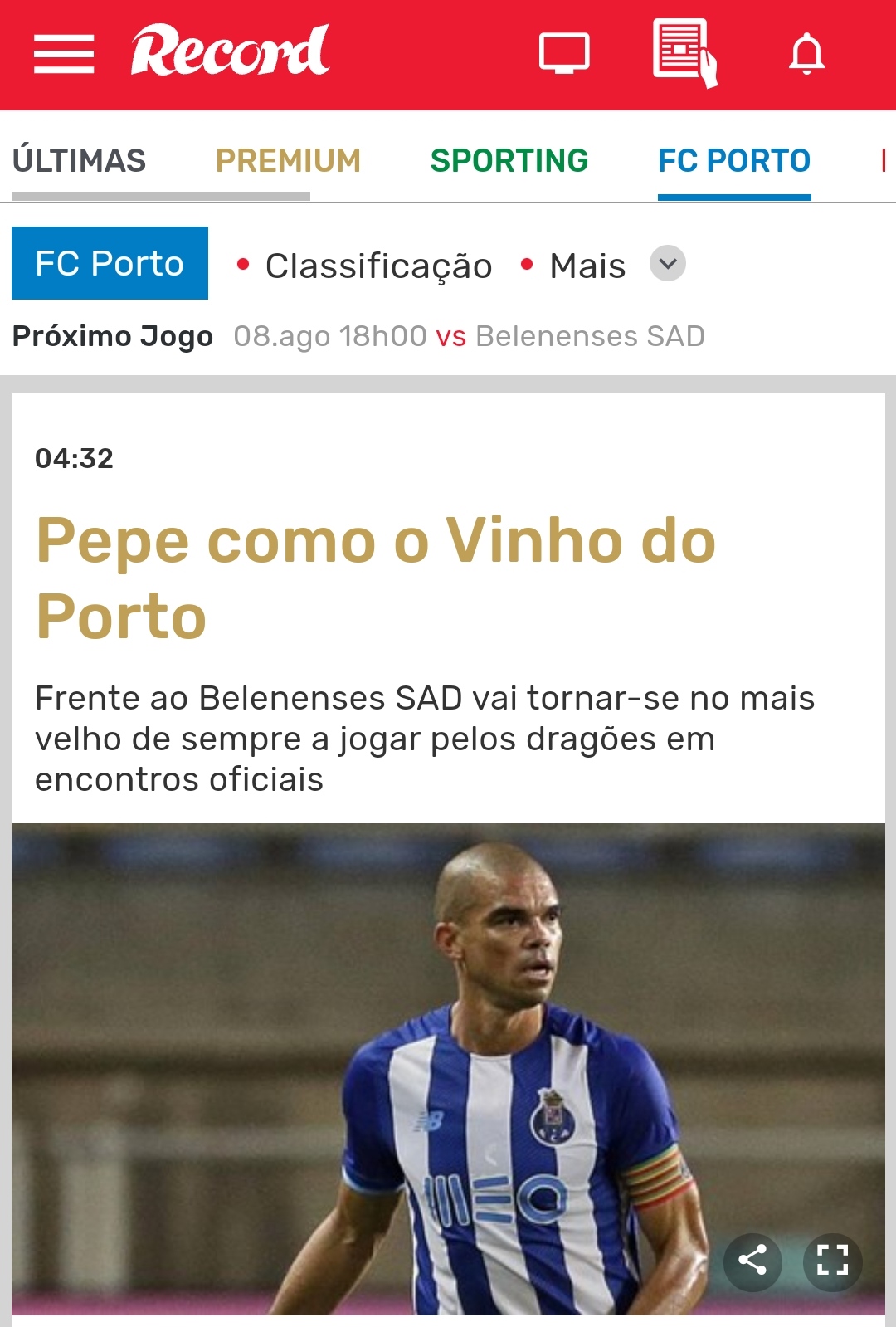 Pepe vai bater mais um recorde no próximo domingo, uma vez que, ao que tudo indica, vai ser titular frente ao BELENENSES SAD.