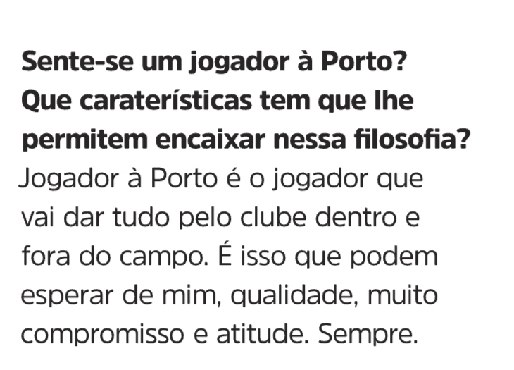 A certa momento da grande entrevista para a revista Dragões foi perguntado a Vitinha se se sentia um jogador à Porto. A resposta não deixa margem para dúvidas….