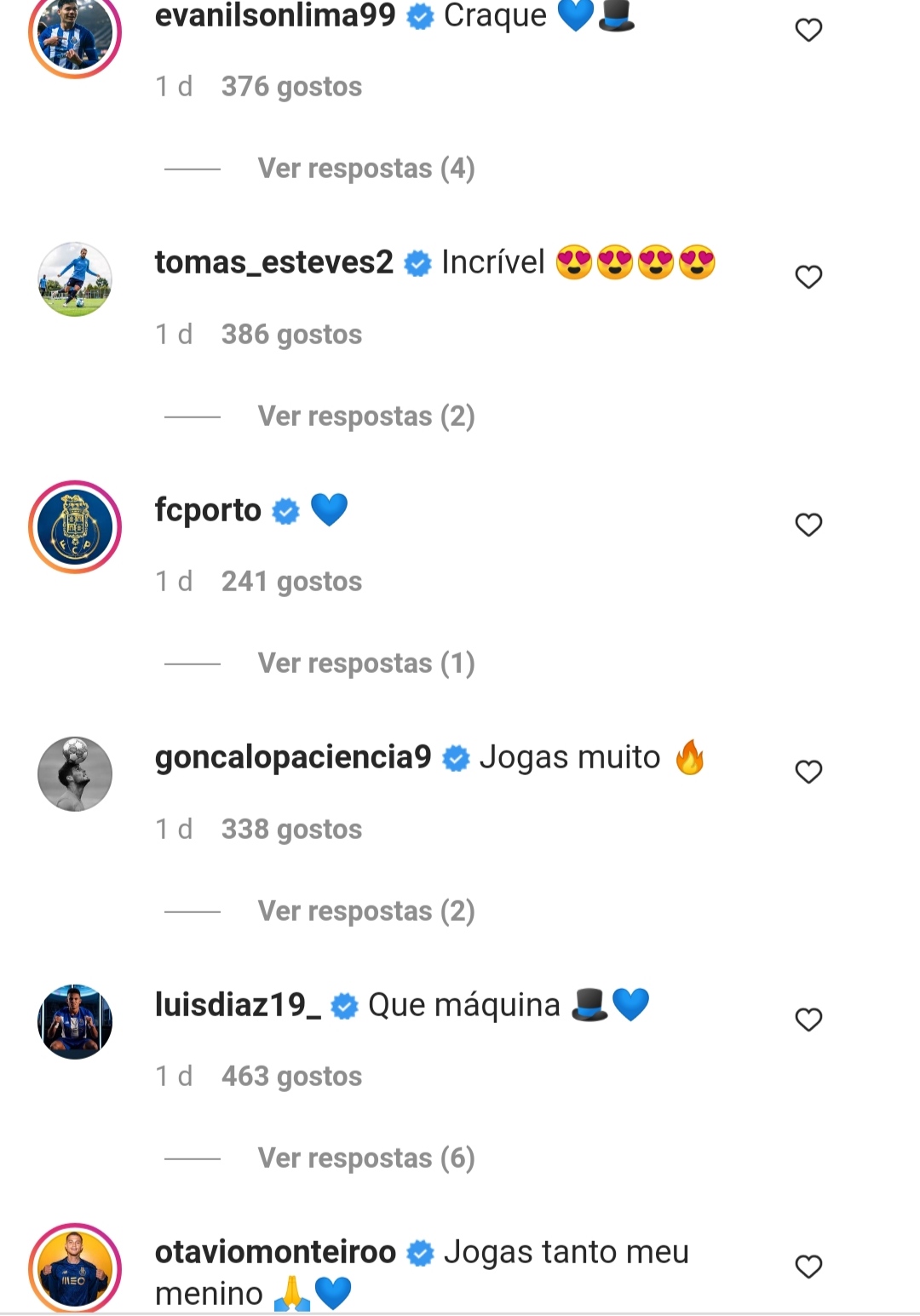 Imediatamente, as suas redes sociais foram invadidas por portistas, parabenizando o seu grande jogo e o seu atual momento de forma. Mas não foram só os adeptos que se renderam à sua exibição. Também os seus colegas se renderam à sua qualidade.