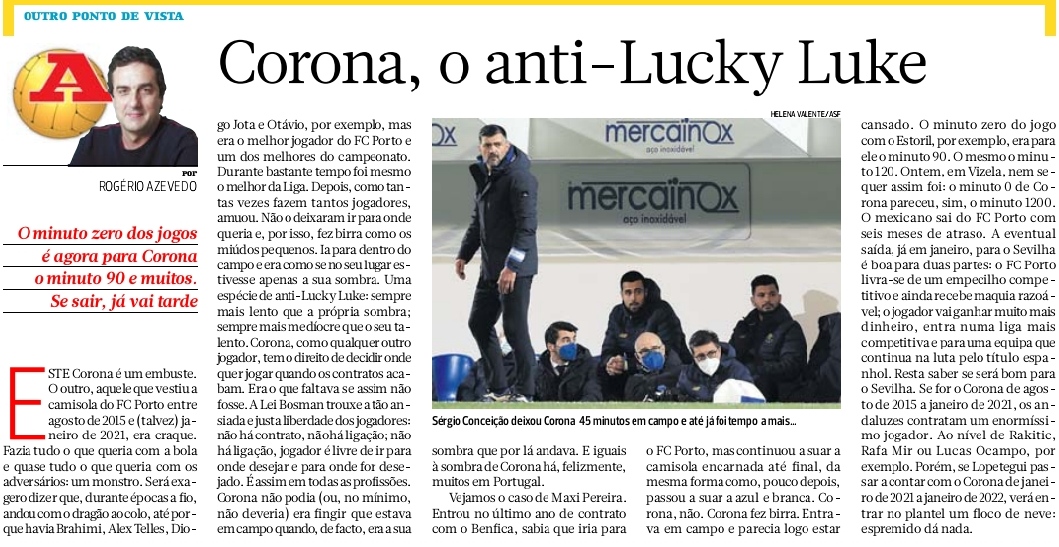 Tantas vezes criticado, inclusive por mim, o jornal ABOLA (ou se calhar será melhor fazer a distinção e enaltecer apenas o autor do artigo) escreve um fantástico artigo sobre Corona.