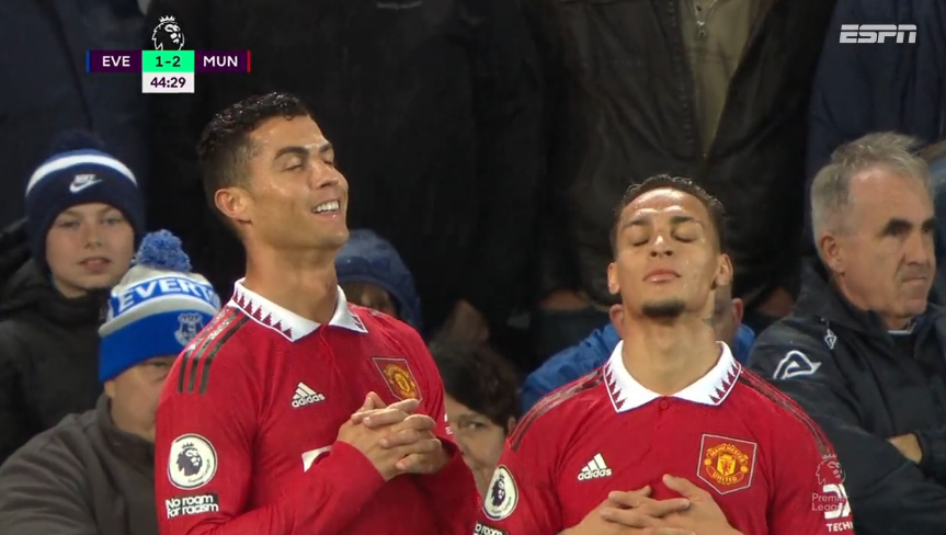 Com o jogo empatado a 1, Ronaldo foi lançado em velocidade por Casemiro e bateu Pickford sem apelo nem agrado.