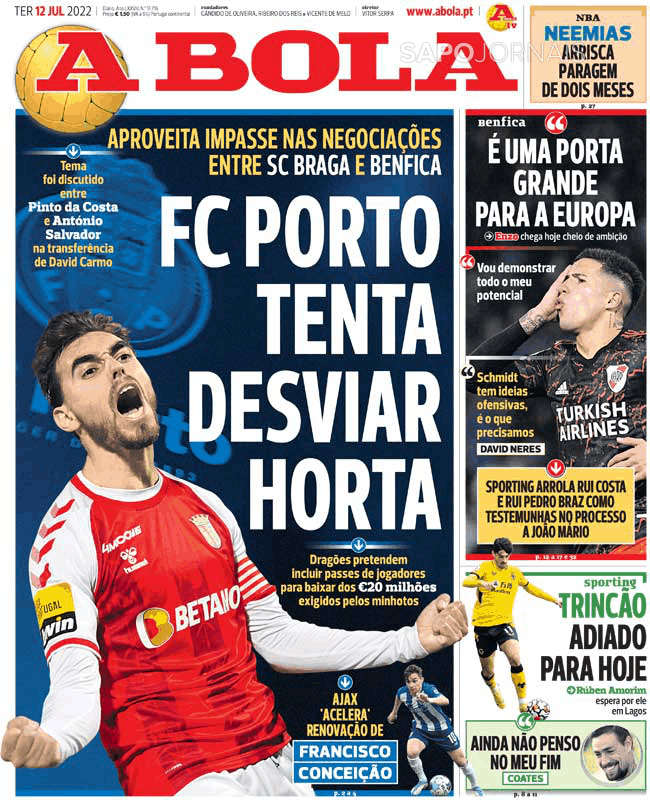 A capa de hoje do jornal ABOLA traz na manchete essa hipótese, mas eu confesso que não dei muito azo a ela, porque não acredito (embora tenha informações que o tema foi falado no negócio Carmo).